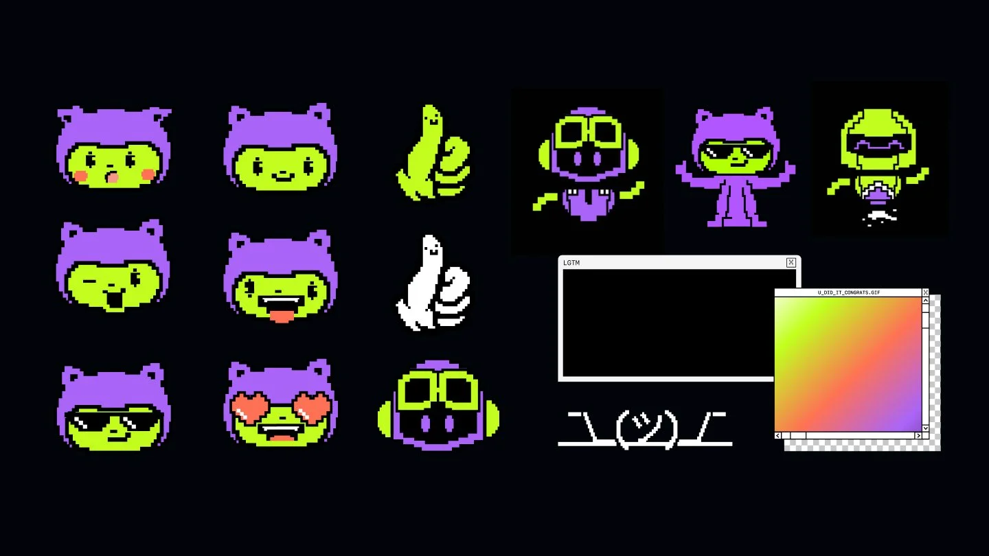 Octocats and mascot sticker illustrations by me :) Bottom right elements from Eleena